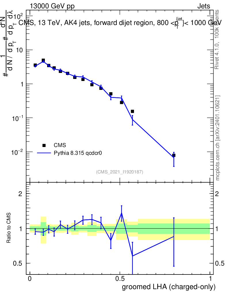 Lines: data, pythia8 8.315 qcdcr0 |