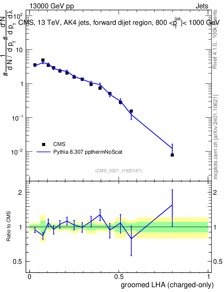 Lines: data, pythia8 8.307 ppthermNoScat |
