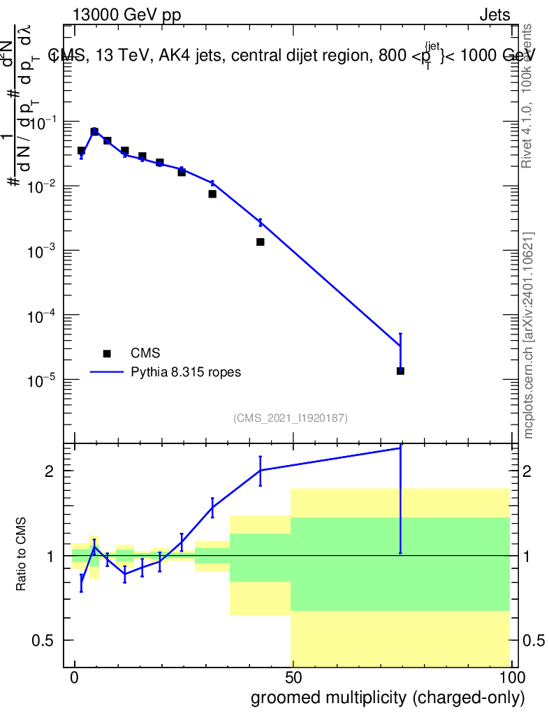 Lines: data, pythia8 8.315 ropes |