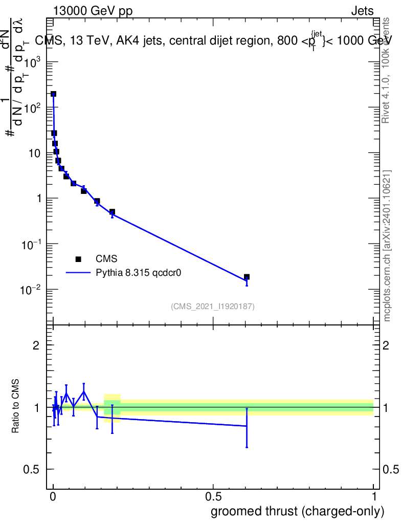 Lines: data, pythia8 8.315 qcdcr0 |