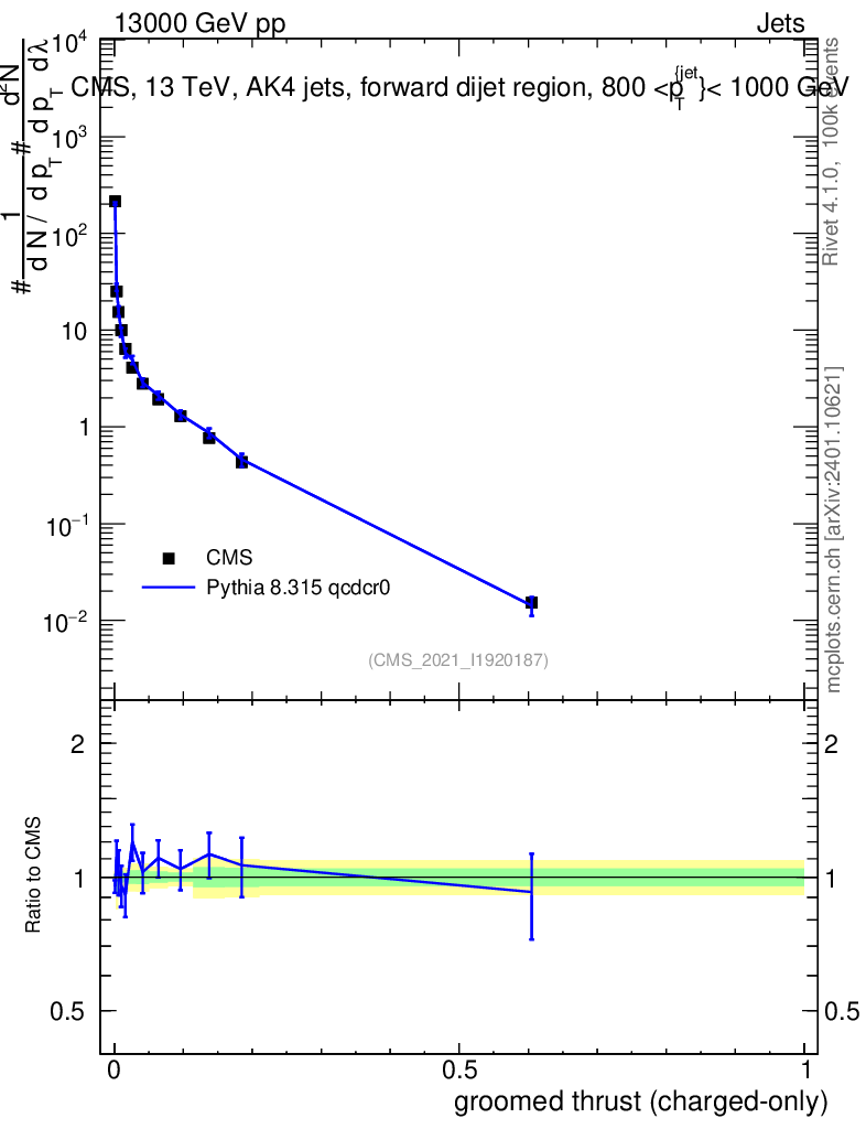 Lines: data, pythia8 8.315 qcdcr0 |