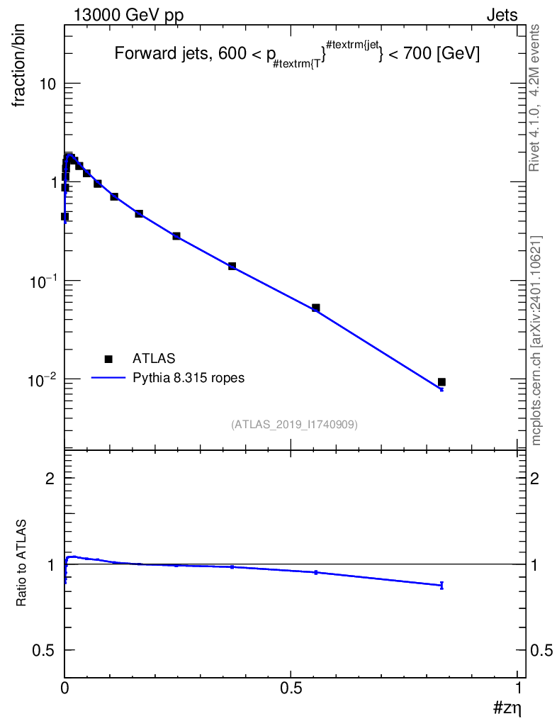 Lines: data, pythia8 8.315 ropes |