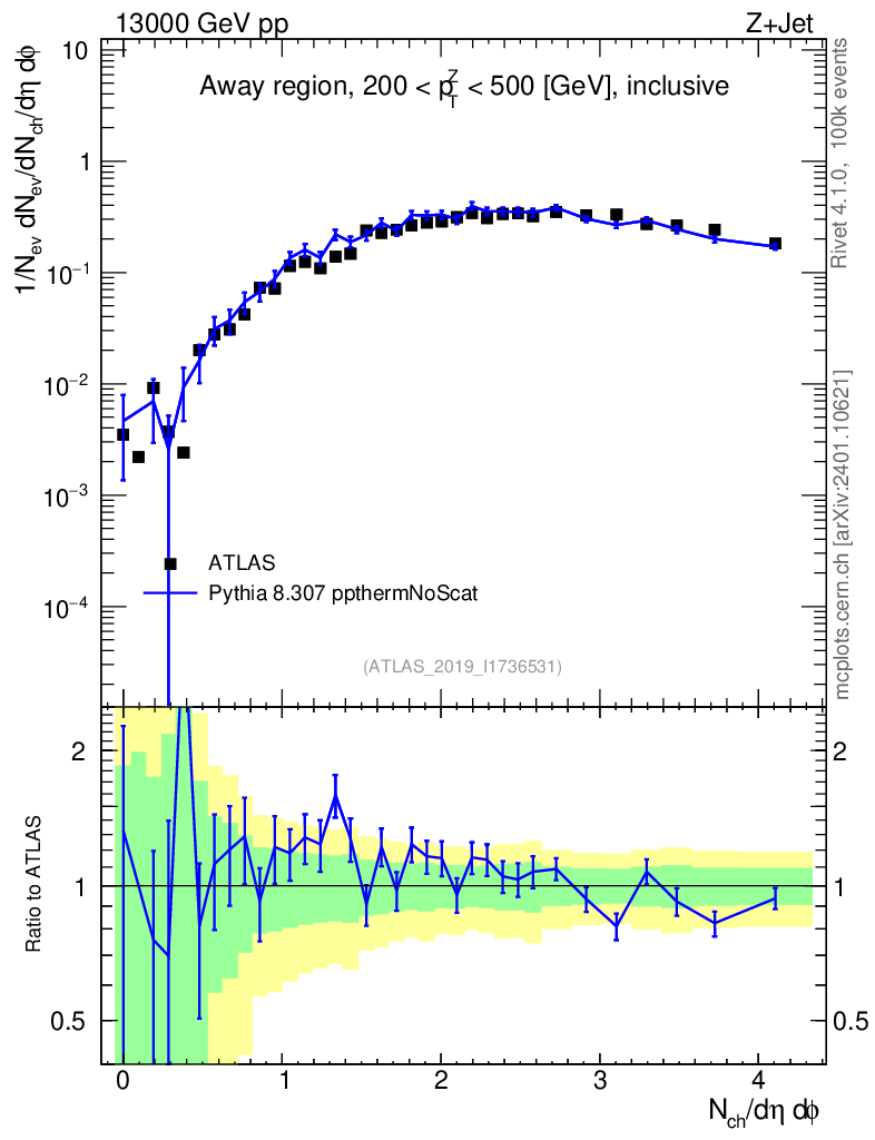 Lines: data, pythia8 8.307 ppthermNoScat |