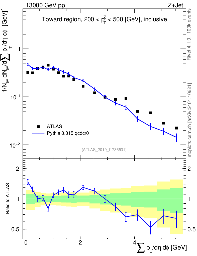 Lines: data, pythia8 8.315 qcdcr0 |