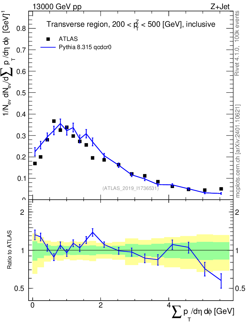 Lines: data, pythia8 8.315 qcdcr0 |