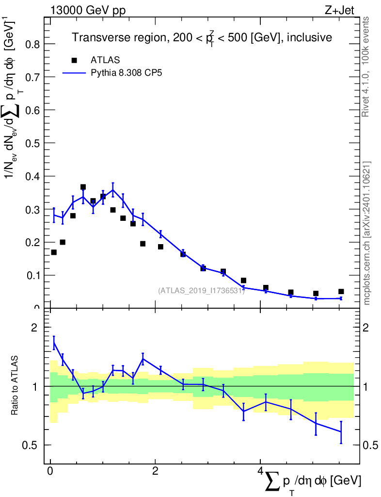 Lines: data, pythia8 8.308 CP5 |