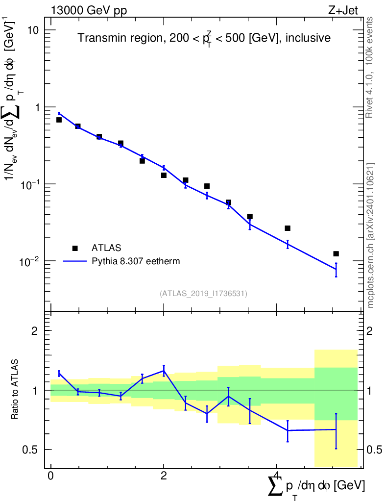 Lines: data, pythia8 8.307 eetherm |