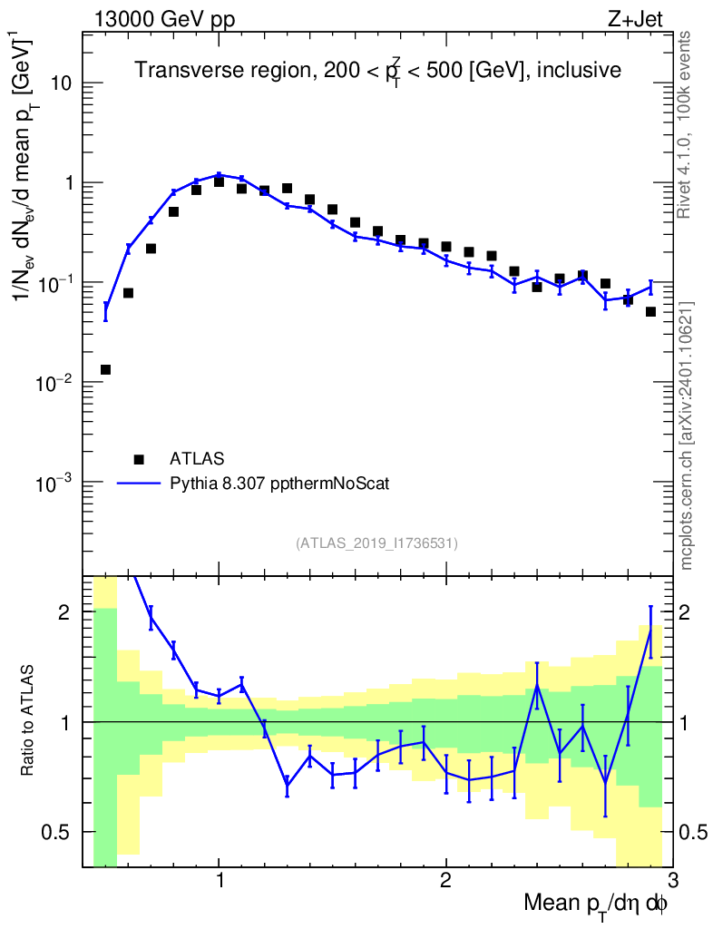 Lines: data, pythia8 8.307 ppthermNoScat |