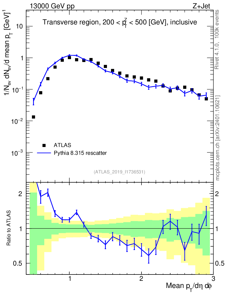 Lines: data, pythia8 8.315 rescatter |