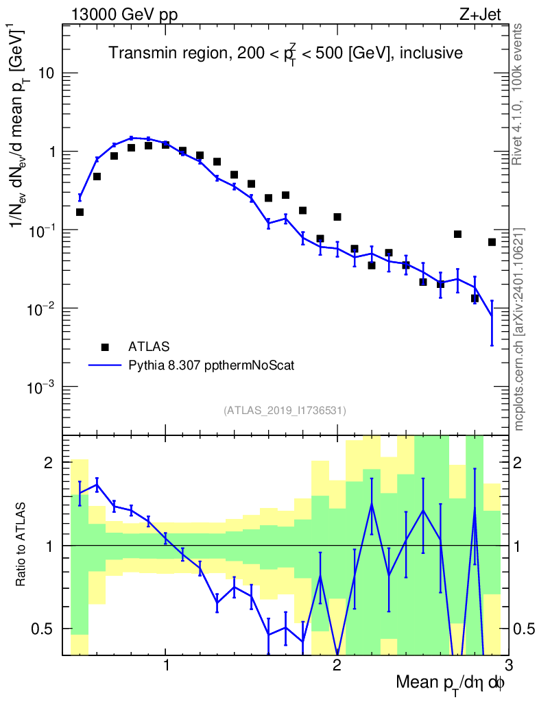 Lines: data, pythia8 8.307 ppthermNoScat |