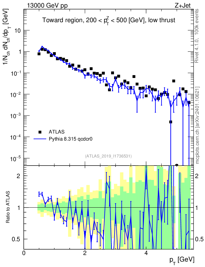 Lines: data, pythia8 8.315 qcdcr0 |