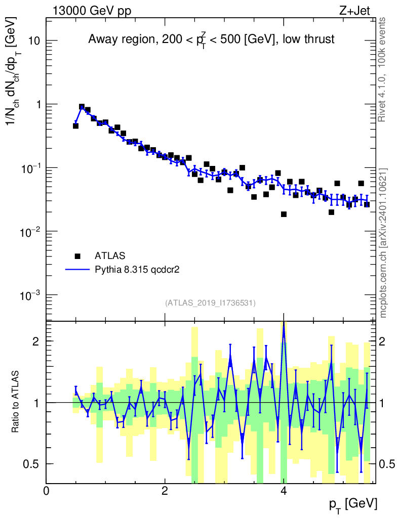 Lines: data, pythia8 8.315 qcdcr2 |