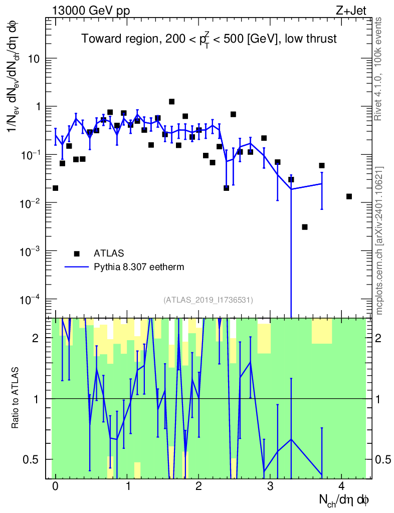 Lines: data, pythia8 8.307 eetherm |