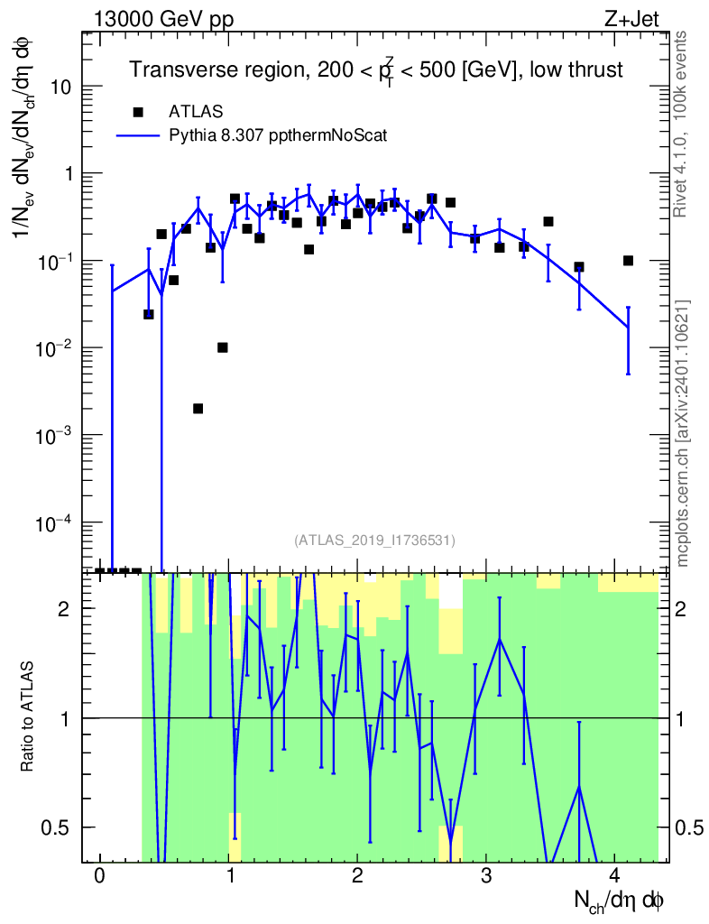 Lines: data, pythia8 8.307 ppthermNoScat |