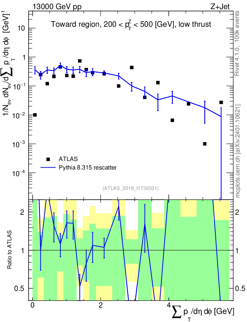 Lines: data, pythia8 8.315 rescatter |