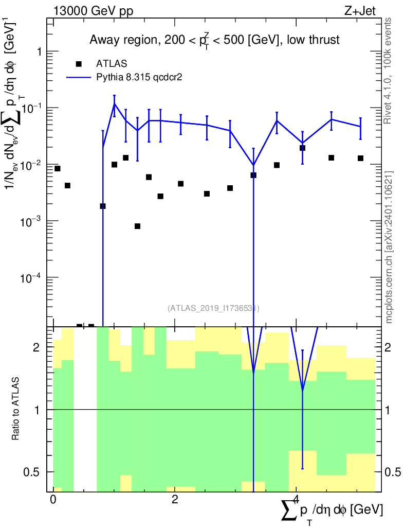 Lines: data, pythia8 8.315 qcdcr2 |