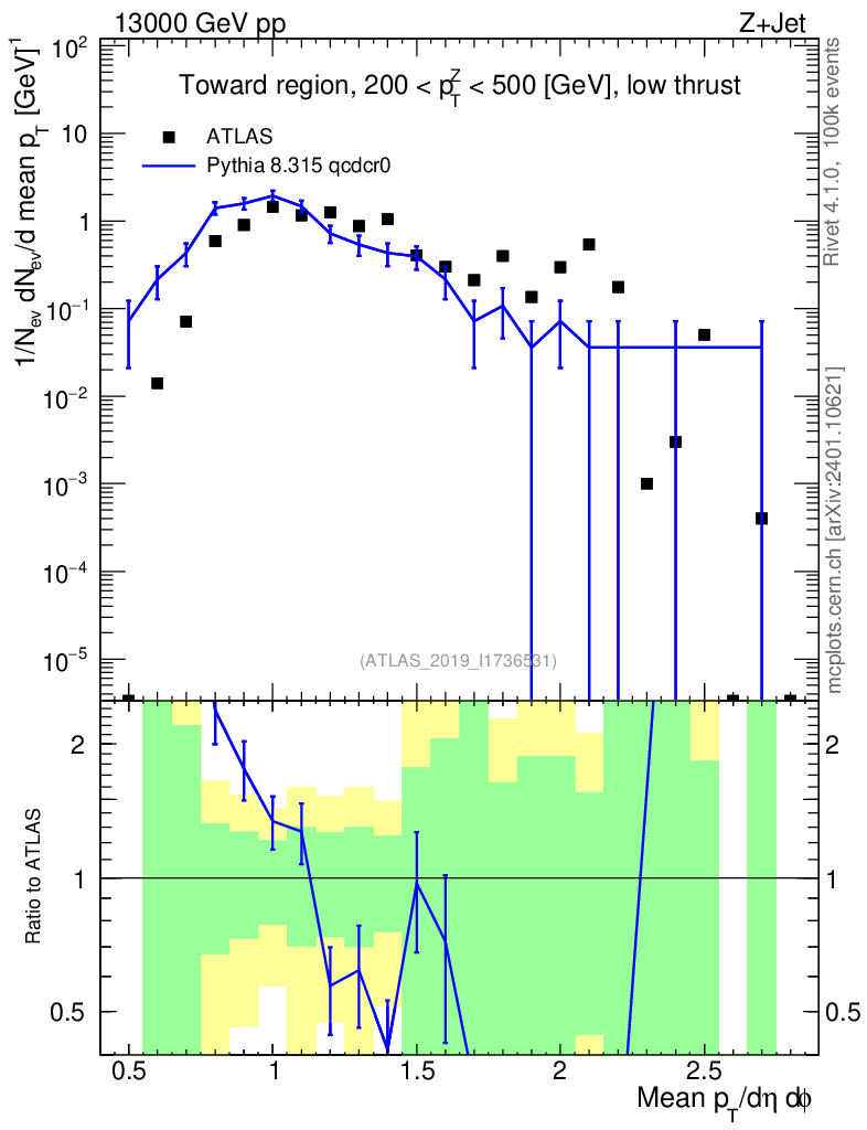 Lines: data, pythia8 8.315 qcdcr0 |