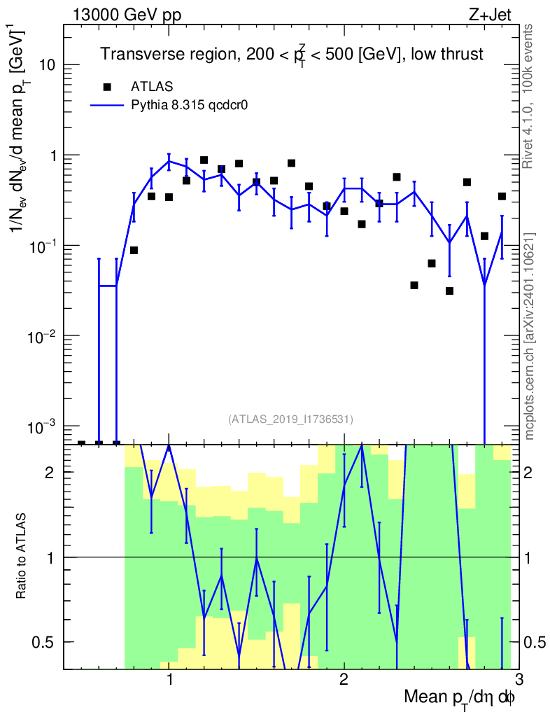 Lines: data, pythia8 8.315 qcdcr0 |