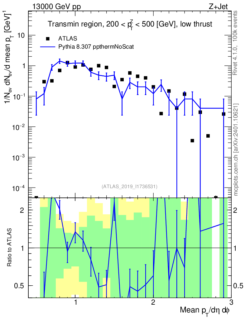Lines: data, pythia8 8.307 ppthermNoScat |