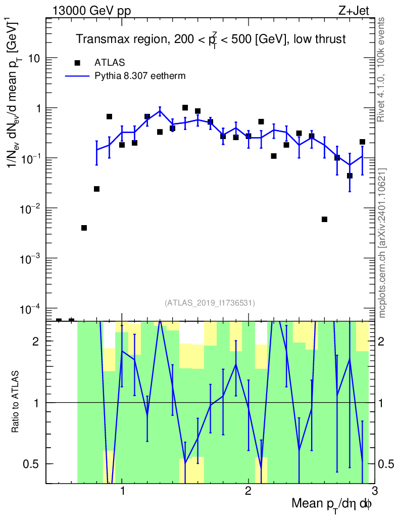 Lines: data, pythia8 8.307 eetherm |