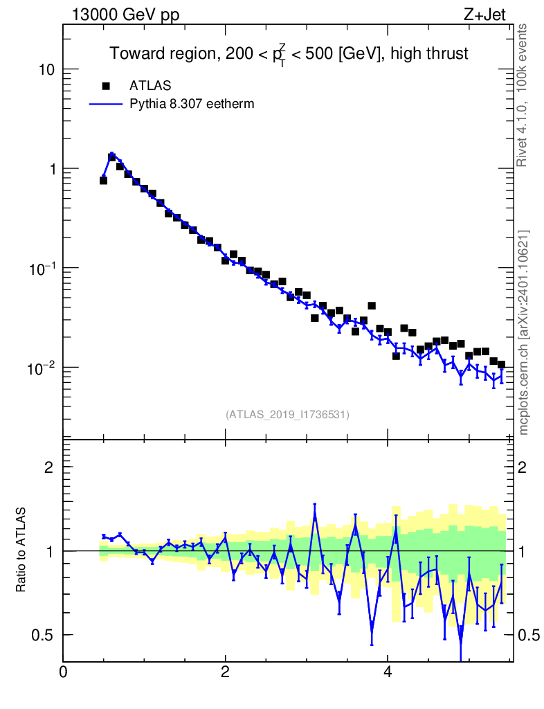 Lines: data, pythia8 8.307 eetherm |