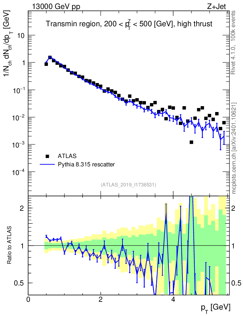 Lines: data, pythia8 8.315 rescatter |