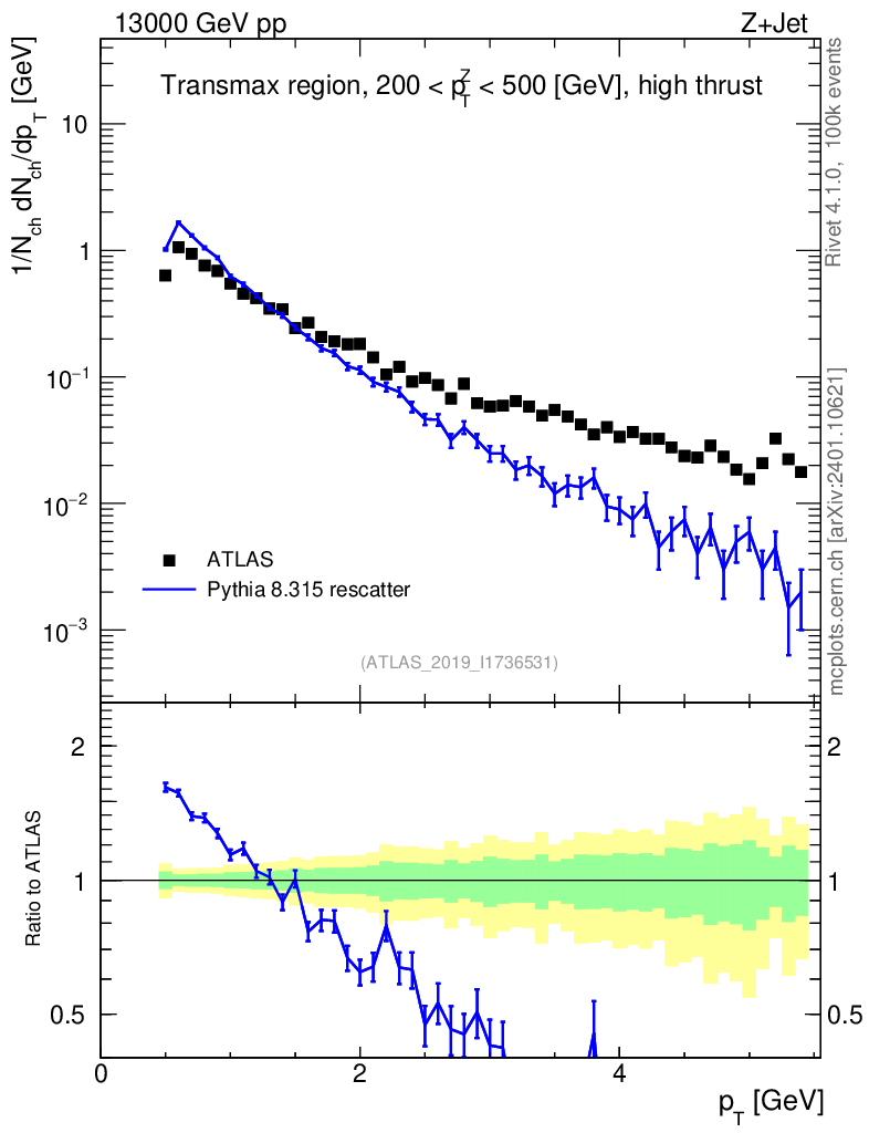Lines: data, pythia8 8.315 rescatter |