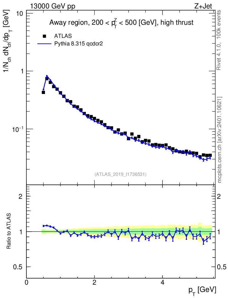 Lines: data, pythia8 8.315 qcdcr2 |