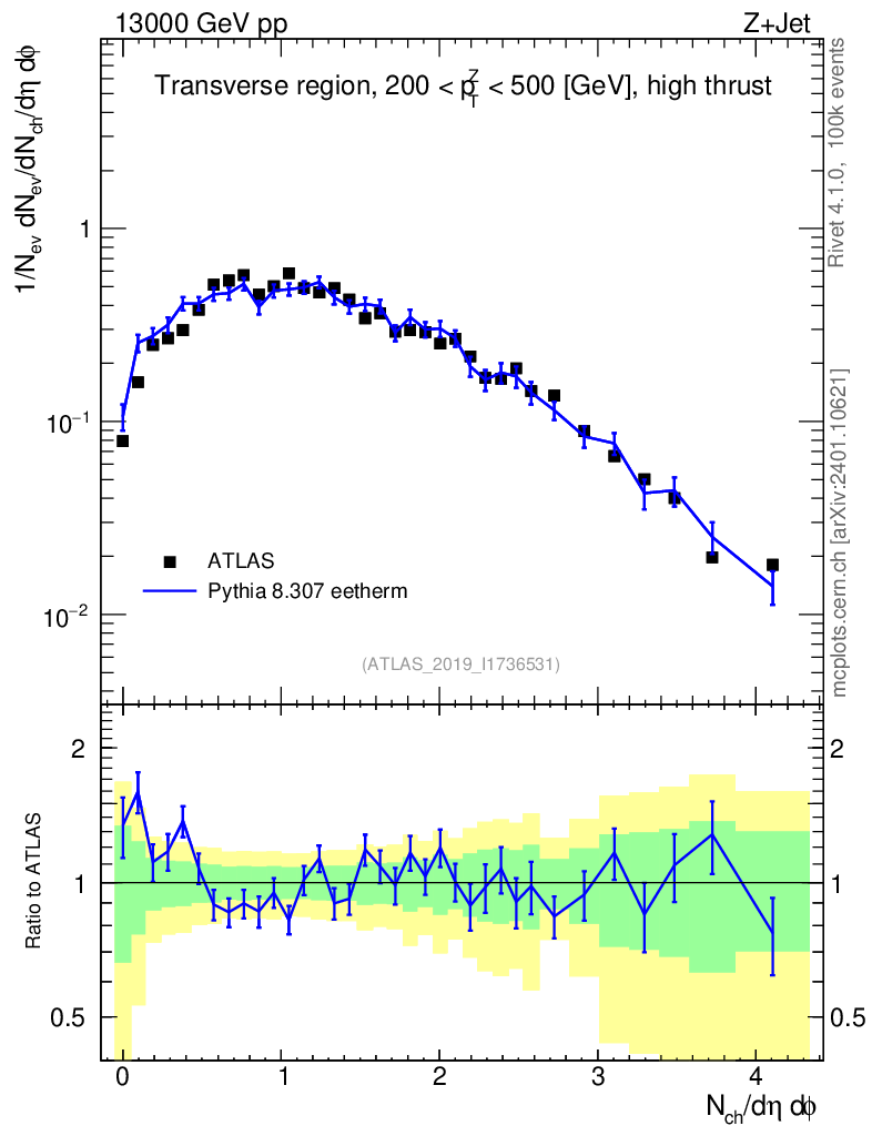 Lines: data, pythia8 8.307 eetherm |