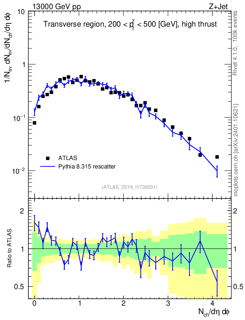 Lines: data, pythia8 8.315 rescatter |