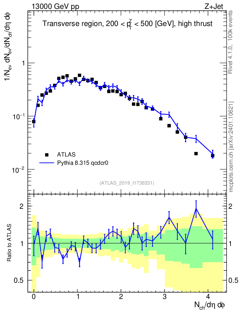 Lines: data, pythia8 8.315 qcdcr0 |