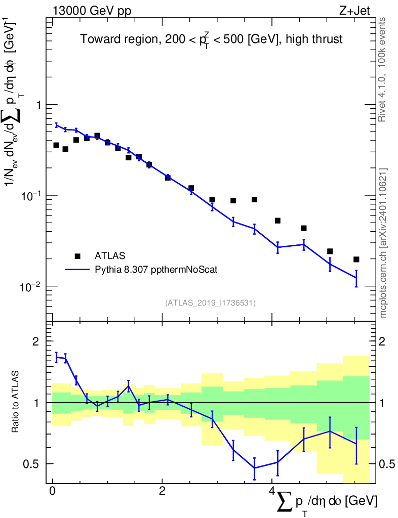 Lines: data, pythia8 8.307 ppthermNoScat |