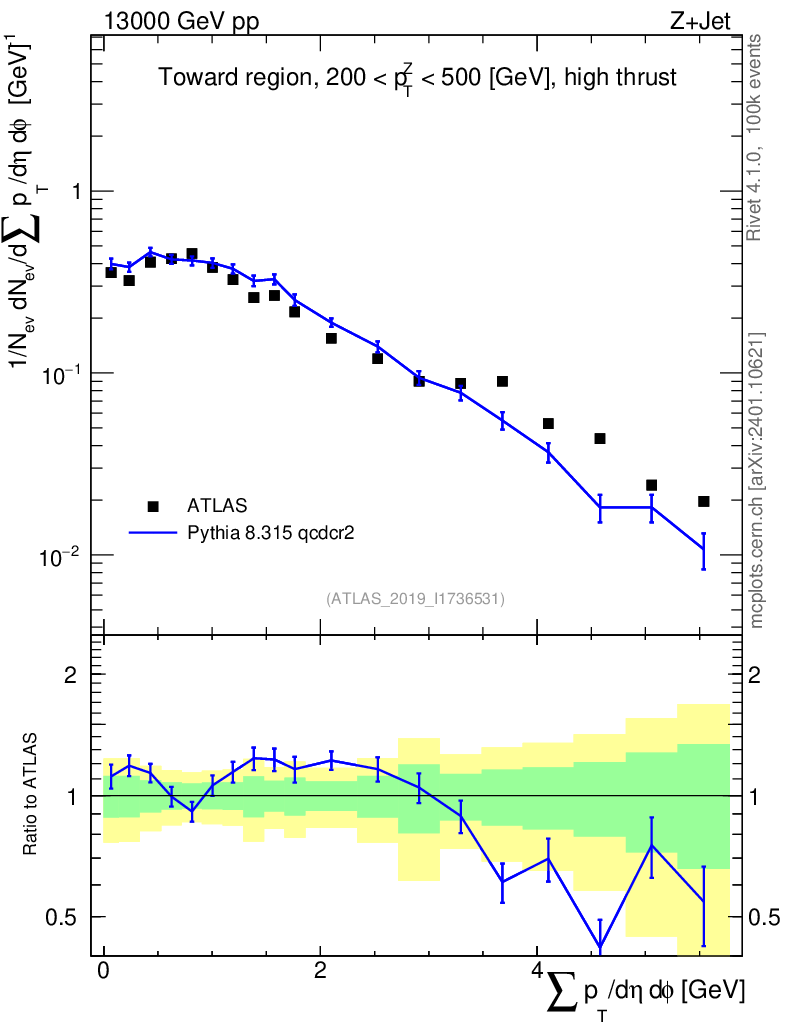 Lines: data, pythia8 8.315 qcdcr2 |
