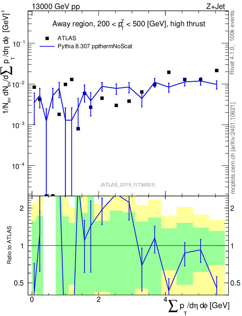 Lines: data, pythia8 8.307 ppthermNoScat |