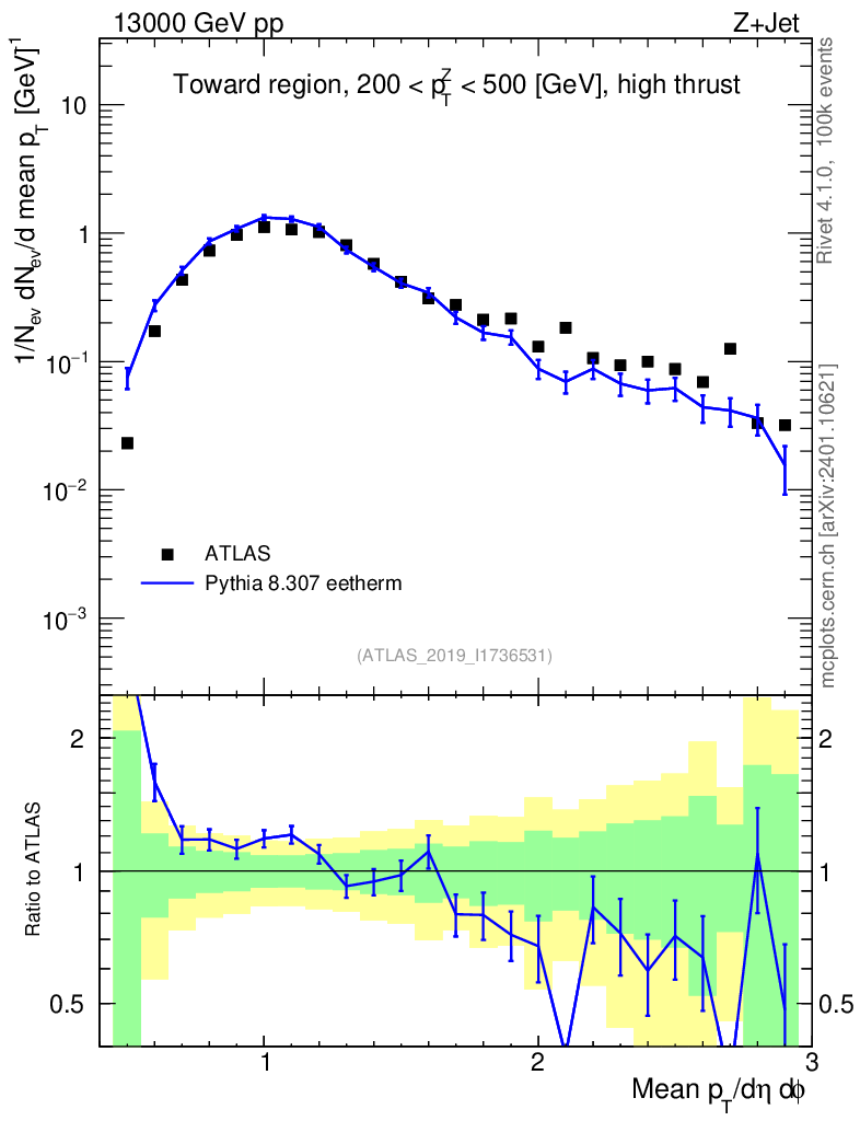 Lines: data, pythia8 8.307 eetherm |
