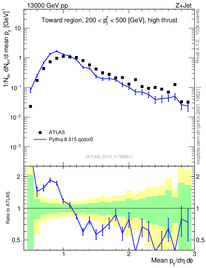 Lines: data, pythia8 8.315 qcdcr0 |