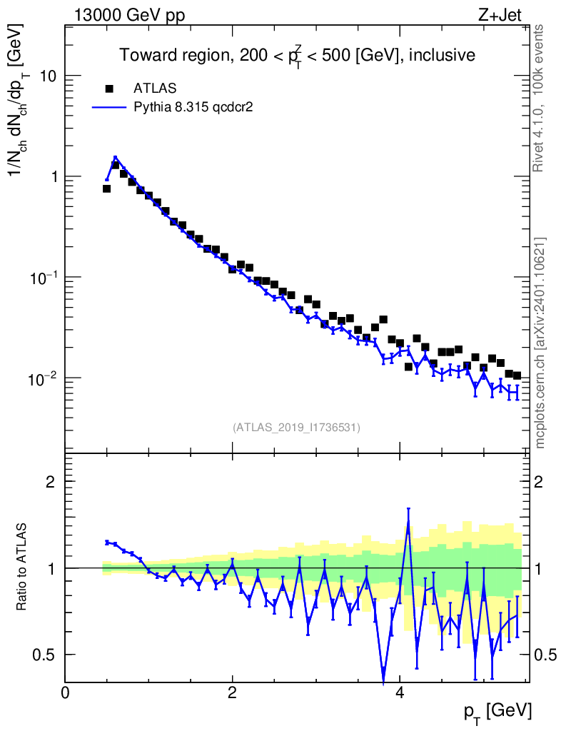 Lines: data, pythia8 8.315 qcdcr2 |