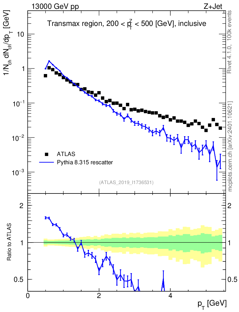 Lines: data, pythia8 8.315 rescatter |