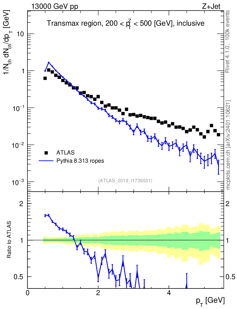 Lines: data, pythia8 8.313 ropes |