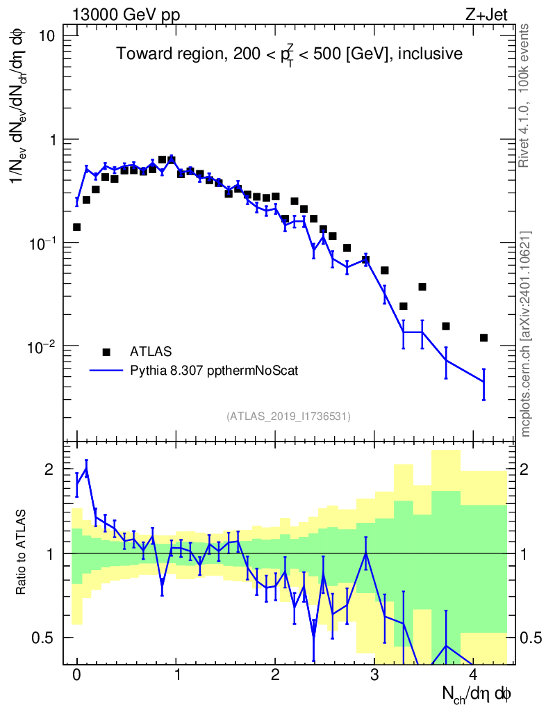 Lines: data, pythia8 8.307 ppthermNoScat |