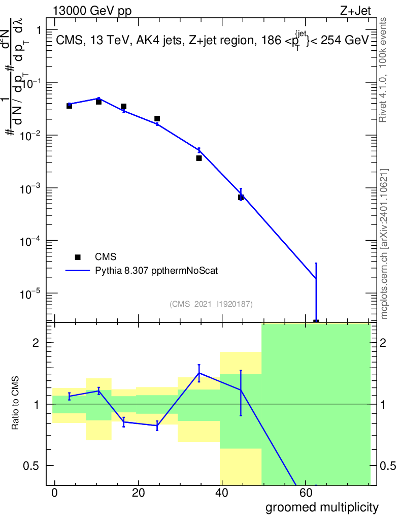 Lines: data, pythia8 8.307 ppthermNoScat |