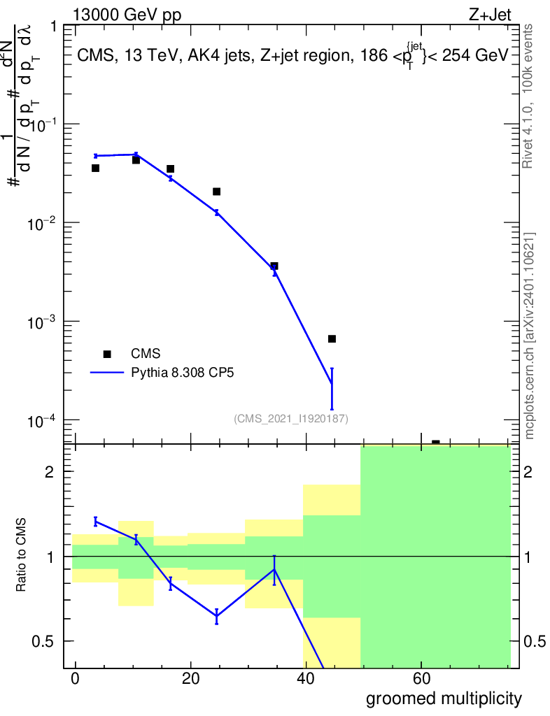 Lines: data, pythia8 8.308 CP5 |