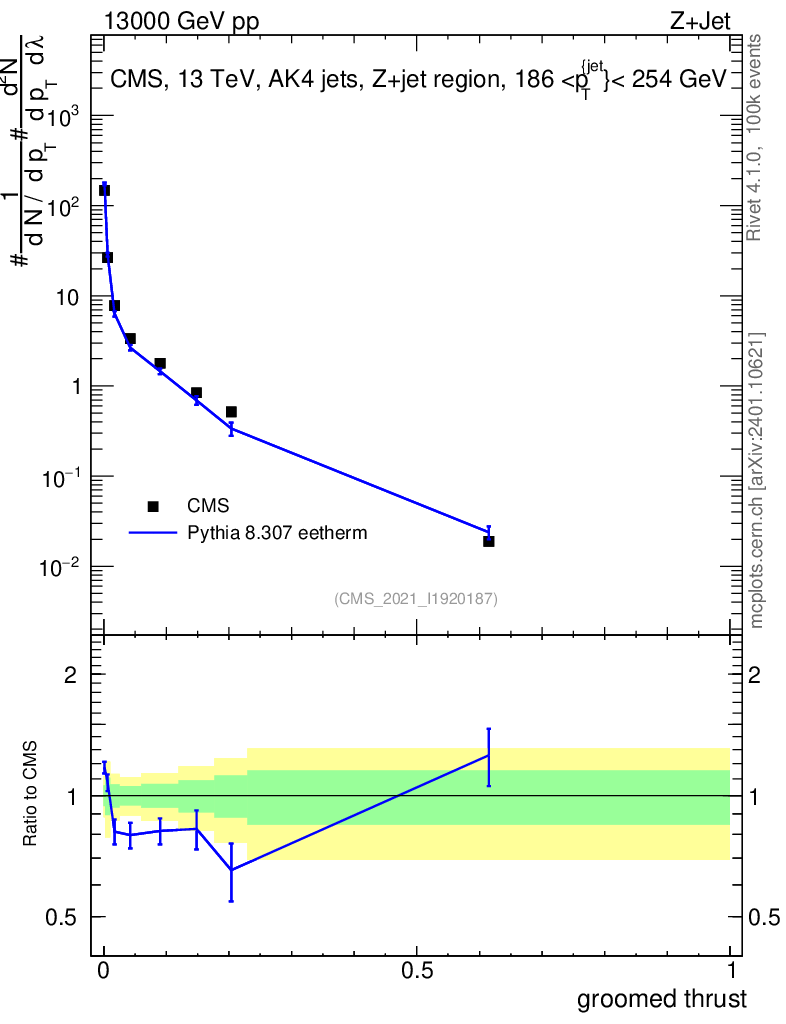 Lines: data, pythia8 8.307 eetherm |