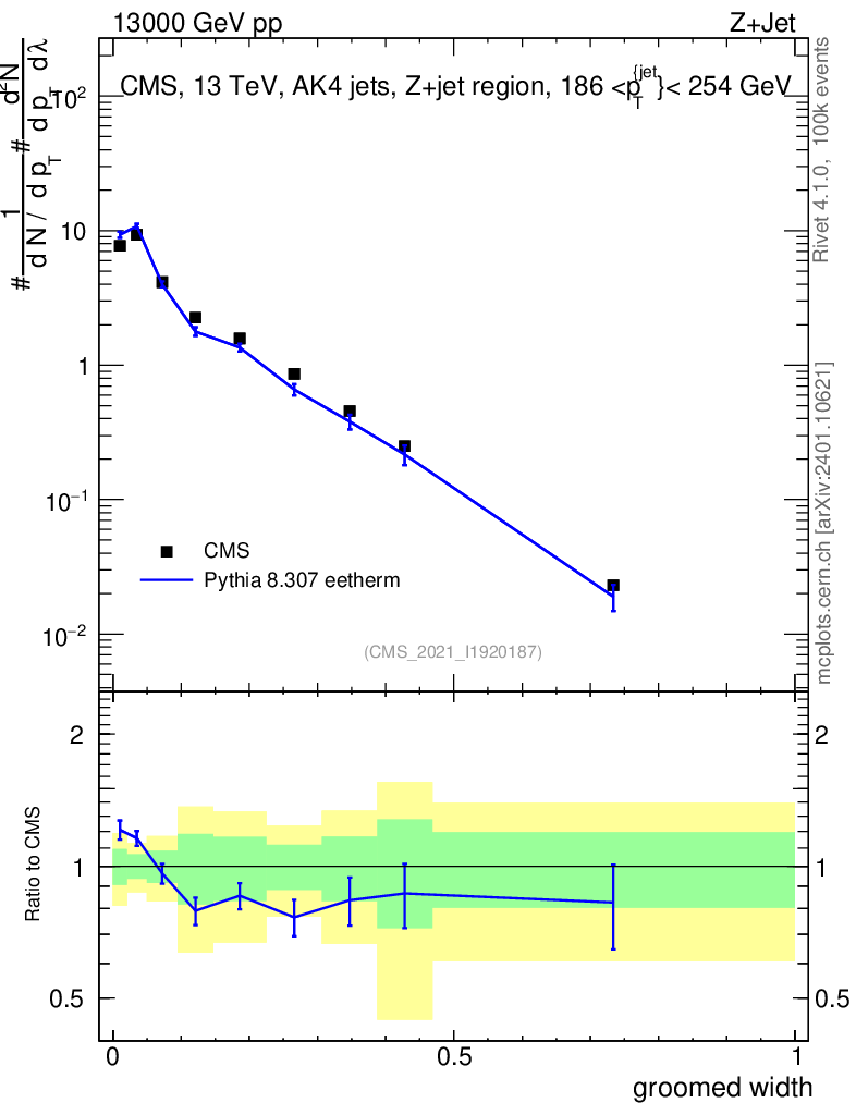 Lines: data, pythia8 8.307 eetherm |
