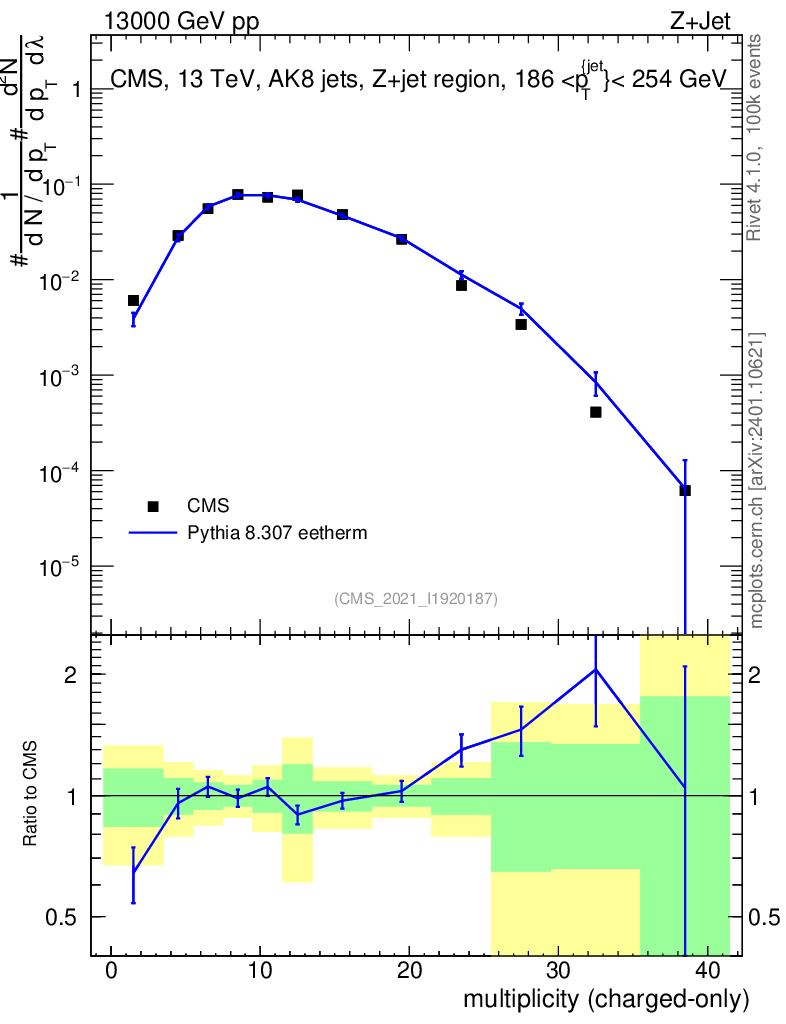 Lines: data, pythia8 8.307 eetherm |