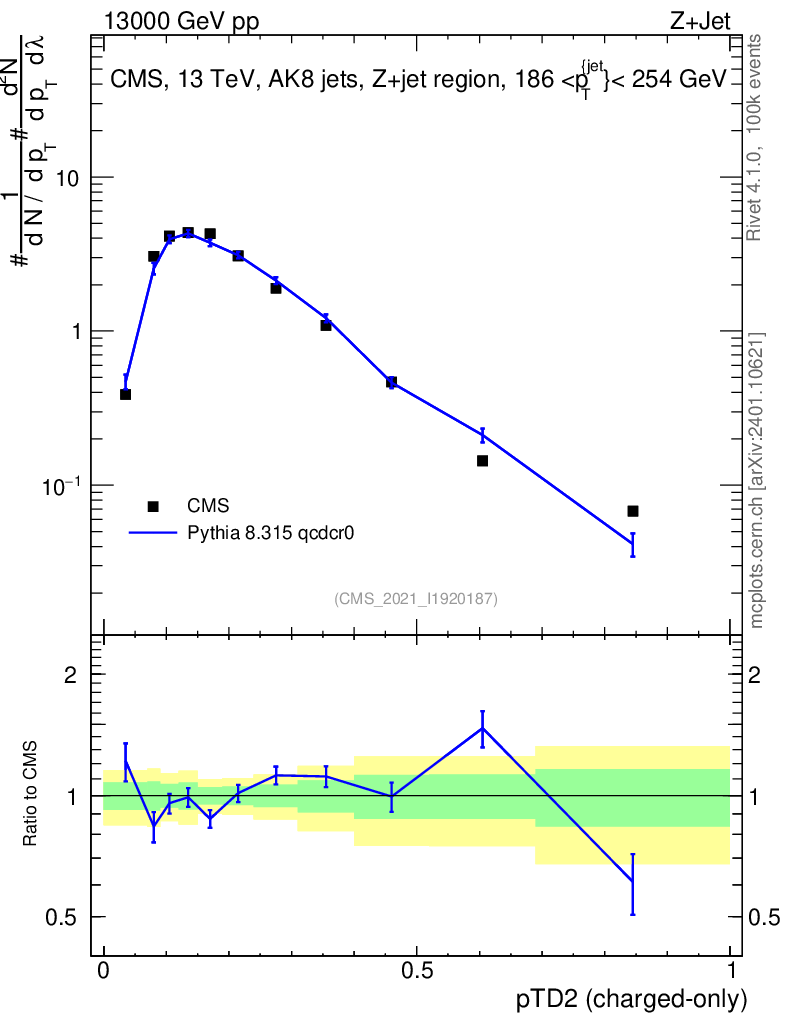 Lines: data, pythia8 8.315 qcdcr0 |