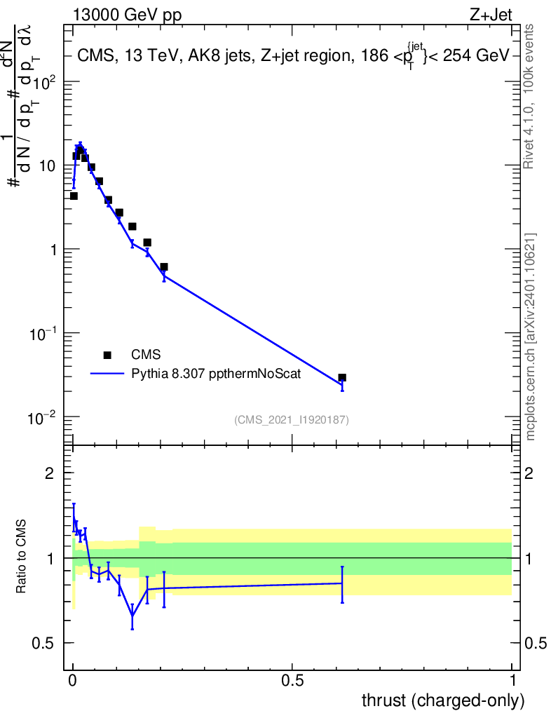 Lines: data, pythia8 8.307 ppthermNoScat |