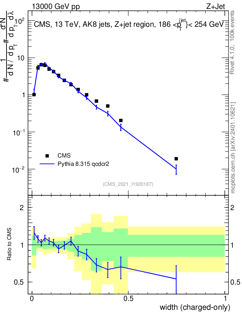 Lines: data, pythia8 8.315 qcdcr2 |