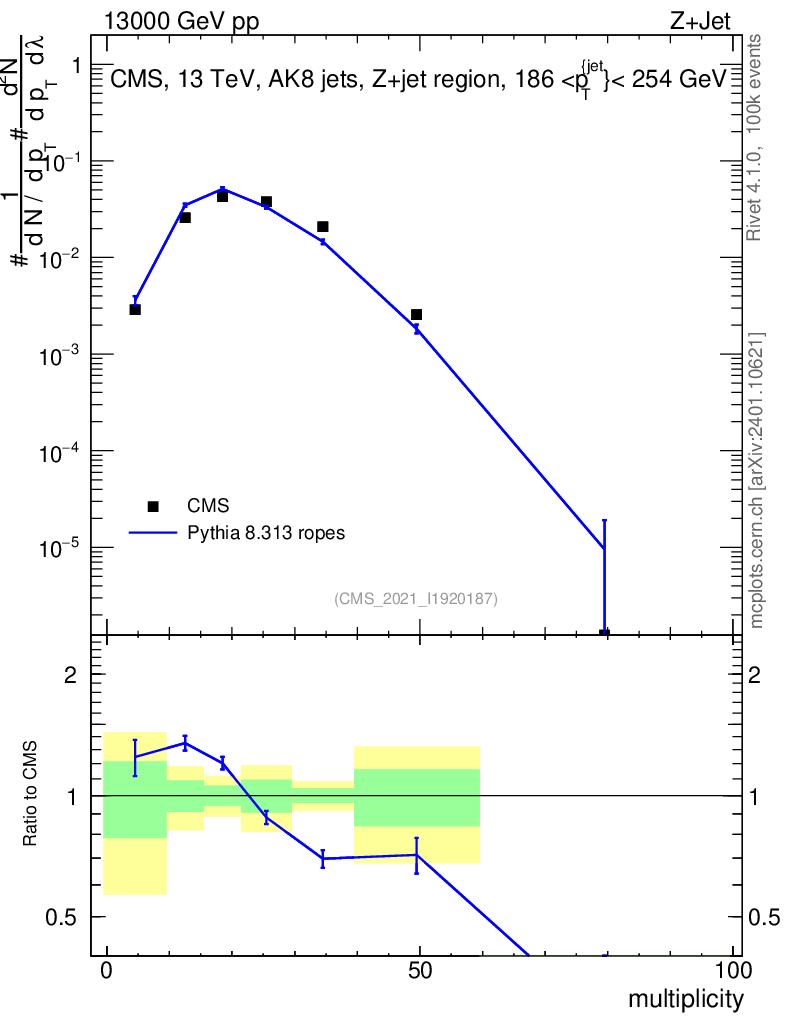 Lines: data, pythia8 8.313 ropes |