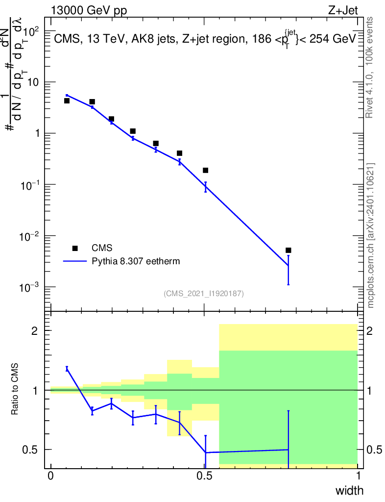Lines: data, pythia8 8.307 eetherm |